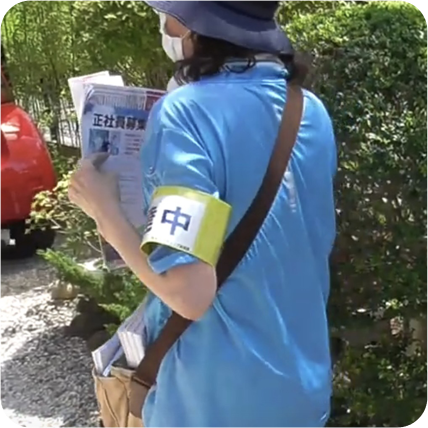 同じエリアには同じ人を配置するよう心掛けています。当社の腕章をつけるだけではなく、GPSでの配布履歴を残すことで、配布の確実性と安心感を提供できます。配布スタッフの入社時研修(2日間)と毎年の定期研修(実施・座学)も開催しています。また埼玉ポスティング協同組合に加入し、組合として埼玉県・埼玉県警と防犯の協定を締結し、地域住民の見守りにも貢献しています。